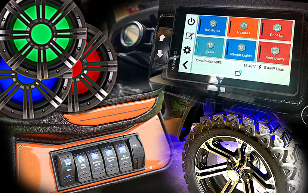 Marine grade weather proof installations. Custom switch panels or digital dash displays. Rock and strobe lights. Custom Bluetooth sound systems.