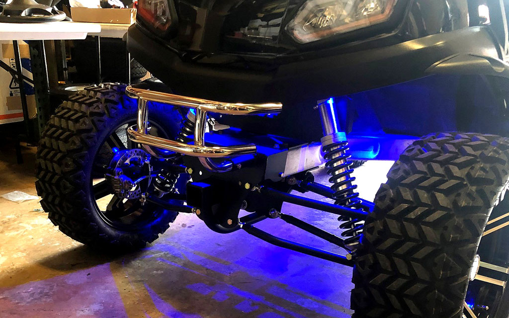 Is your golf cart riding a little rough? Customize your cart with lift kits for that off road look and disc brakes for high speed applications.